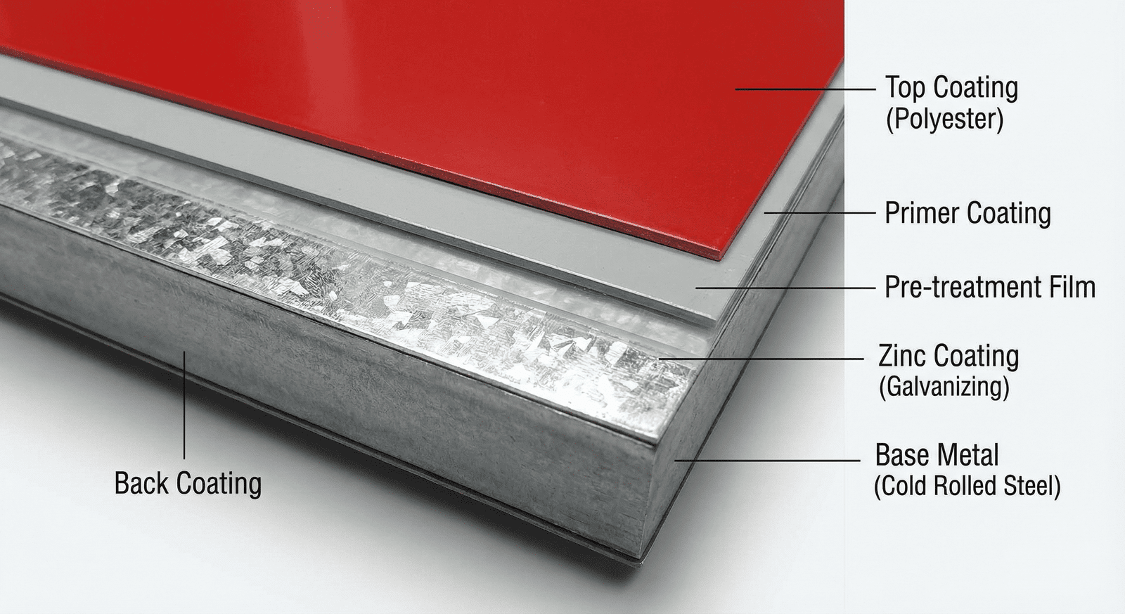 To understand the quality of the product, you must look at the layers. A high-quality PPGI product is effectively a “sandwich” of protective materials designed to withstand the elements.